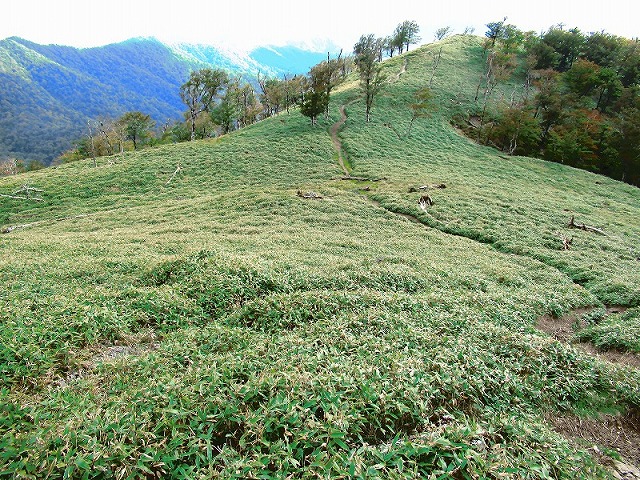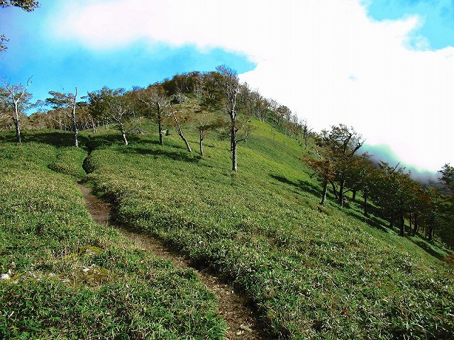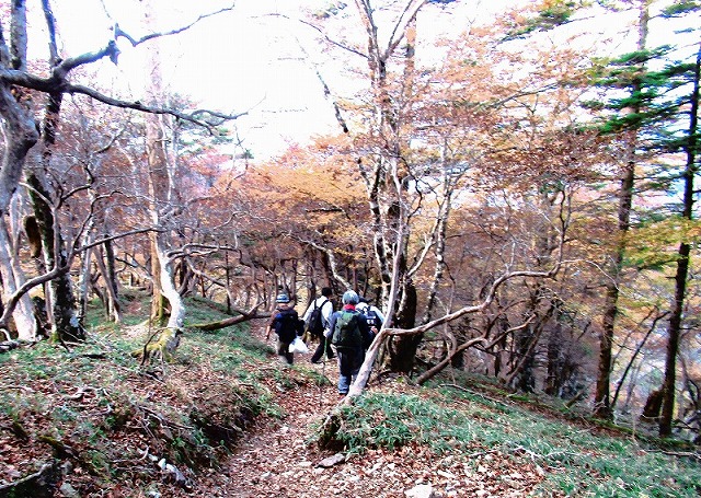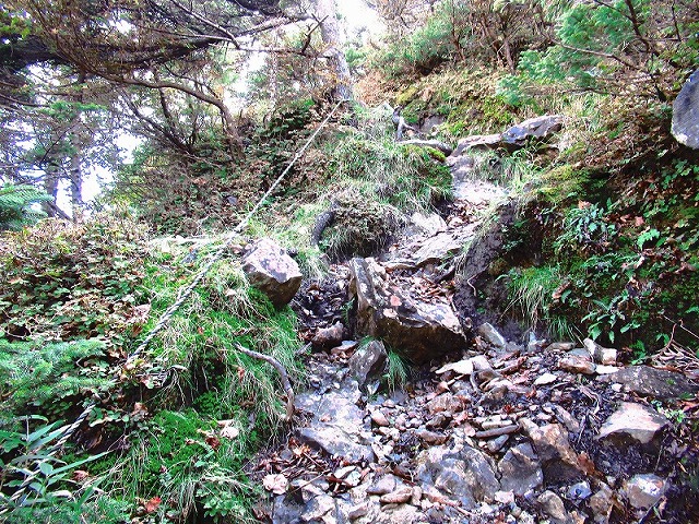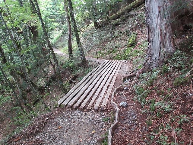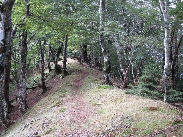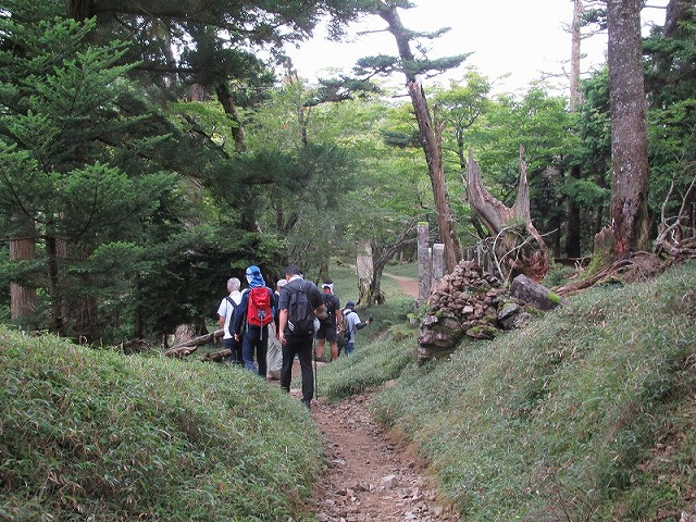 ここも奥駈道らしい道が続きますが フラットではありません。