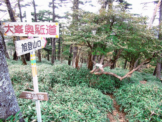 西峰から20分で、奥駆への分岐道です。