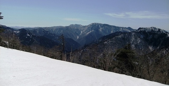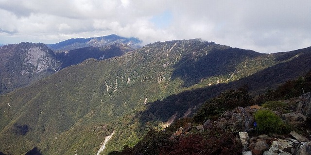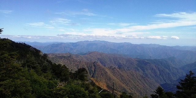 奥駈の尾根筋が連なって見えます。素晴らしい眺めです。