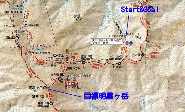 赤いルートが 七面山から奥駆への 今回の予定ルートです。