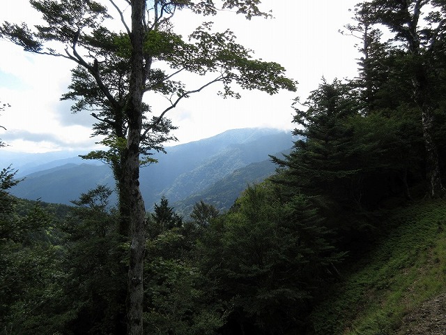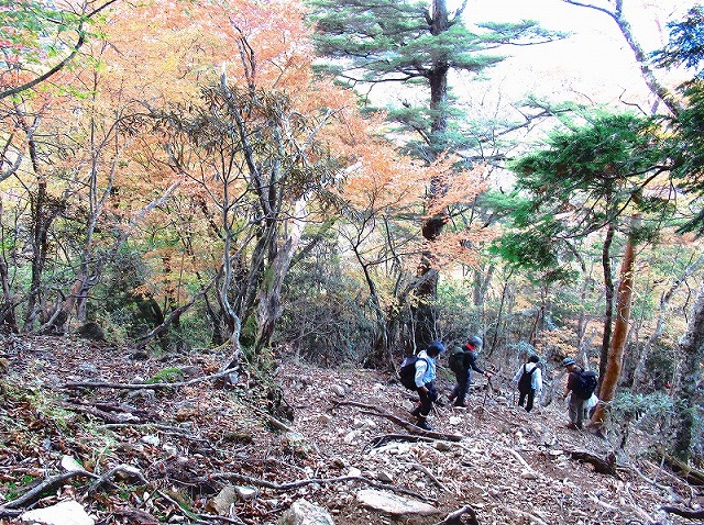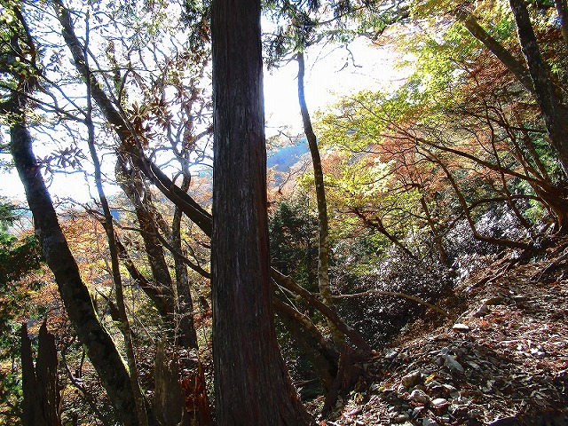 尾根から反対側へ、まっすぐに下りて奥駆を探しました。しかし30分以上下りても、奥駆道は見つかりません。