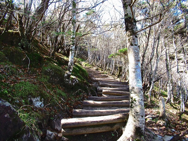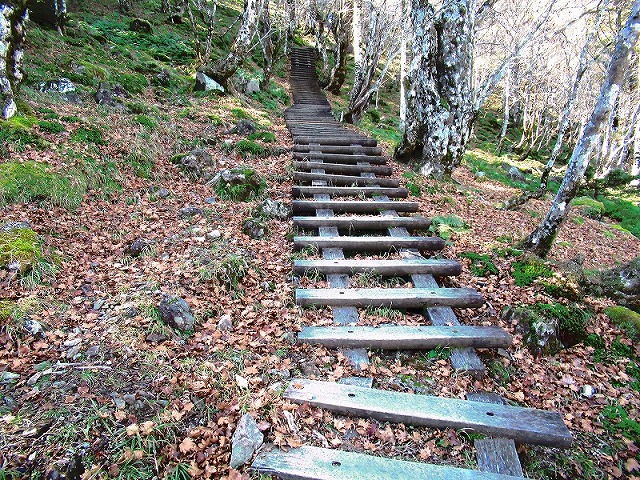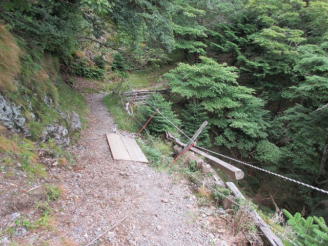 急斜面のトラバース道をずっと歩いてきて こんな道になると滑落の恐れがないので