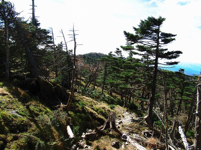 七面山東峰がすぐそこに見えるようになると、踏み跡がはっきりしてきました。一安心です。