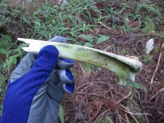 道の真ん中に骨が何本かありました。鹿の足の骨と思います。