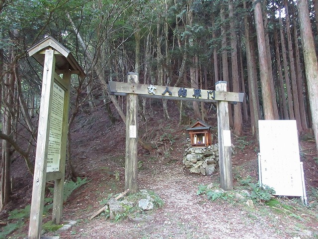 大峯山から南へ歩く人は 少ないので この門や看板の「女」の文字は消されたり、
