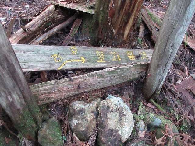奥駈道からの柏木道分岐標識です。