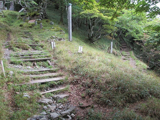 この道を往復とも歩くしかないのでこちらへ進みます。この道が唯一の奥駈道となっている