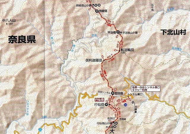 下の図は大峯奥駆道の180キロに及ぶ全図です。