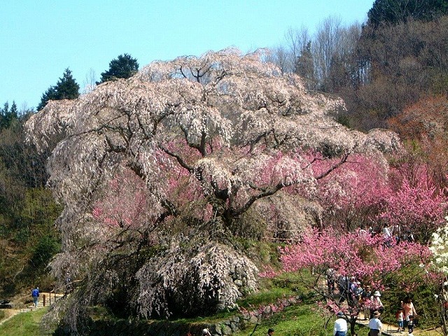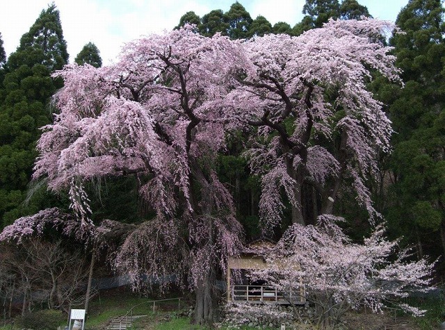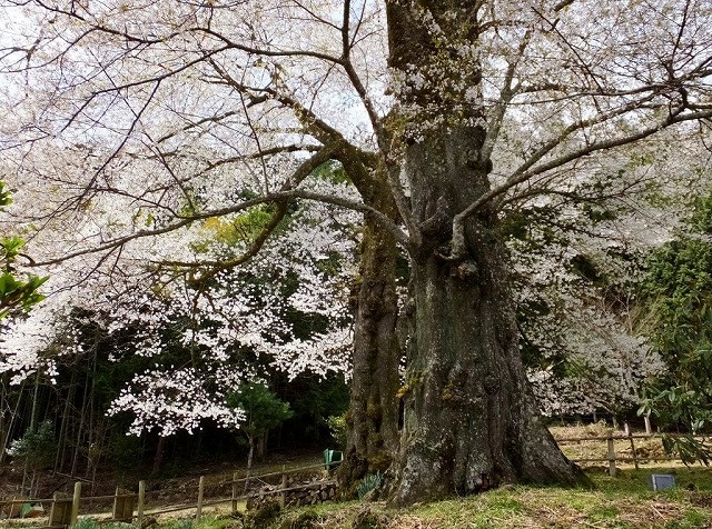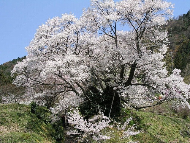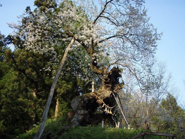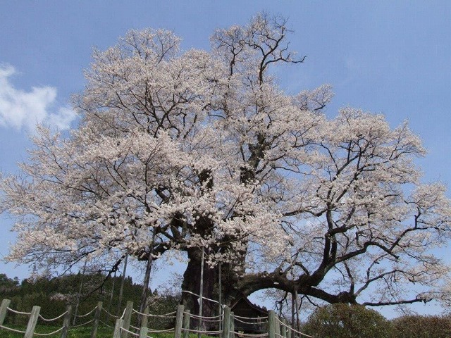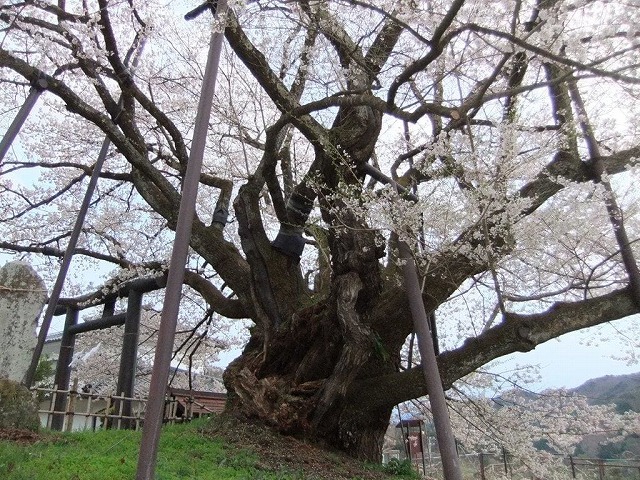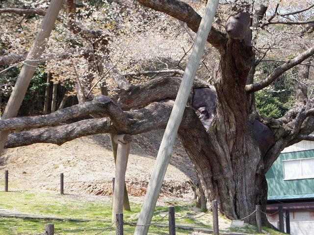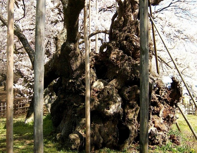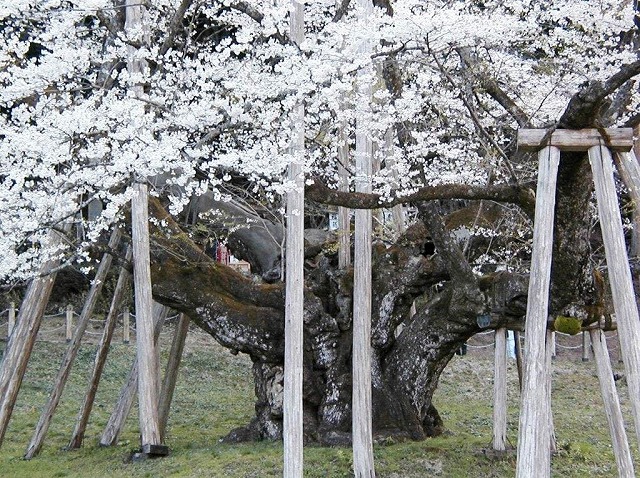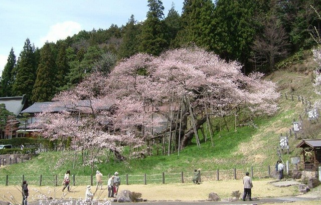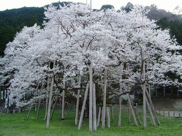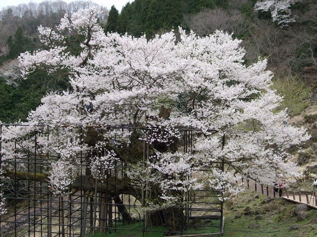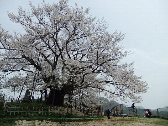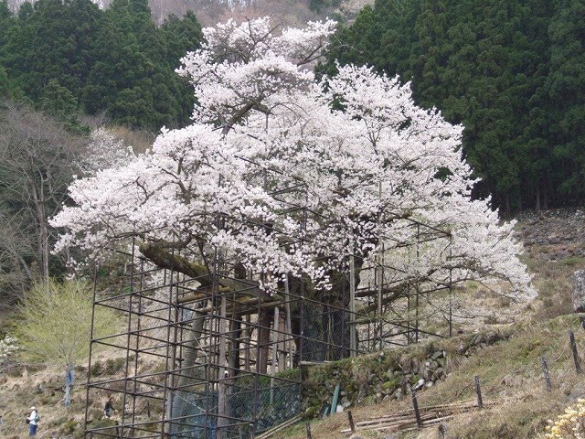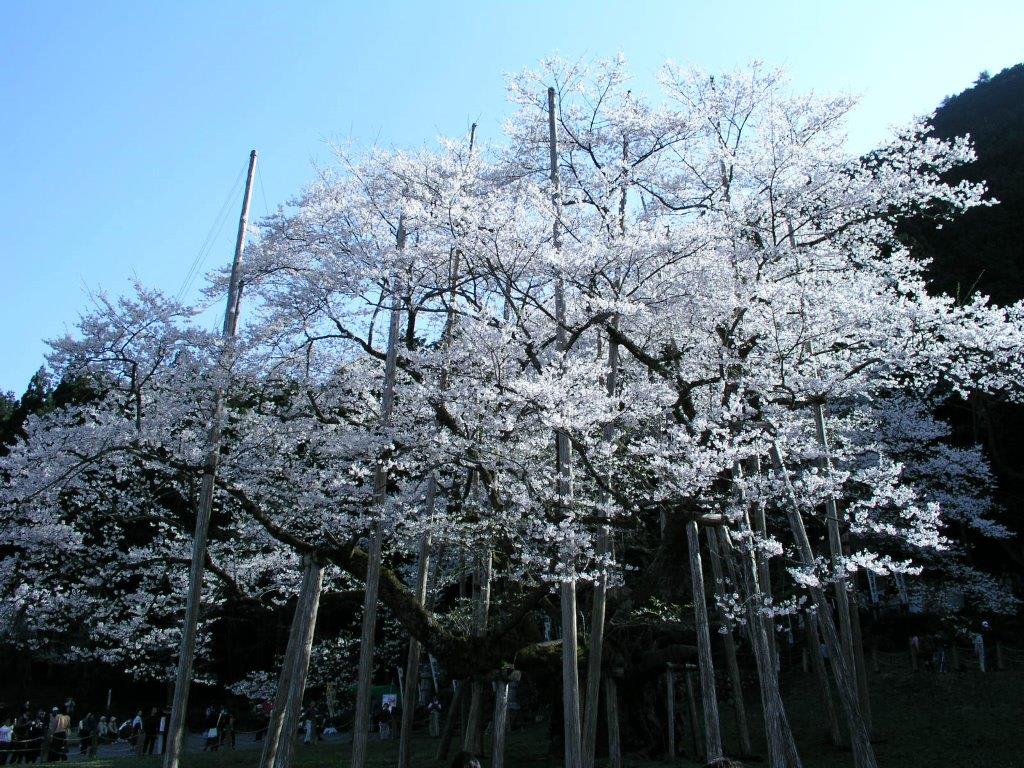 樹齢2000年という日本一長寿の桜で野生の江戸彼岸桜だそうだ。