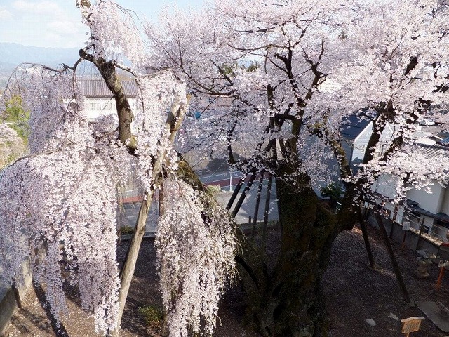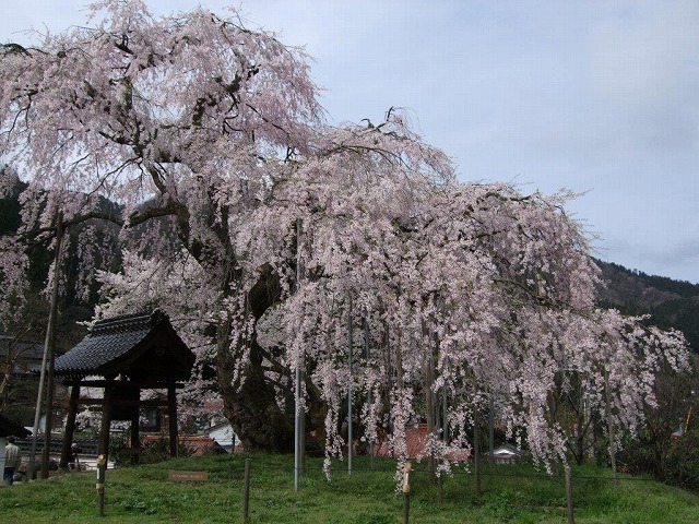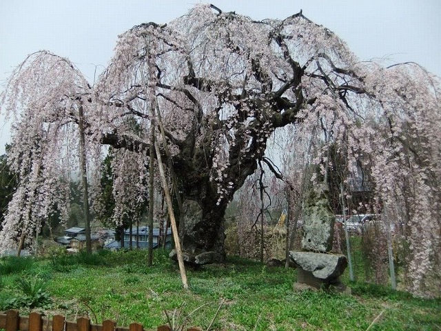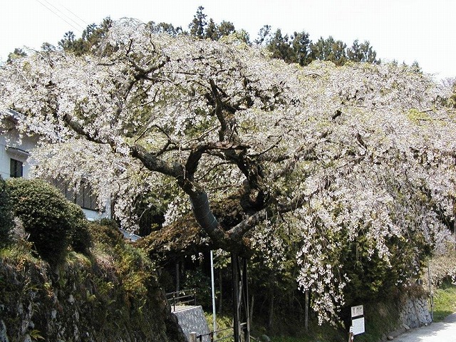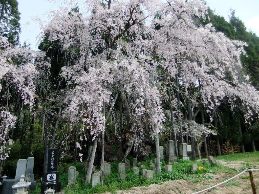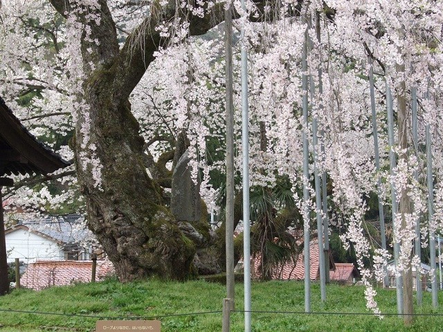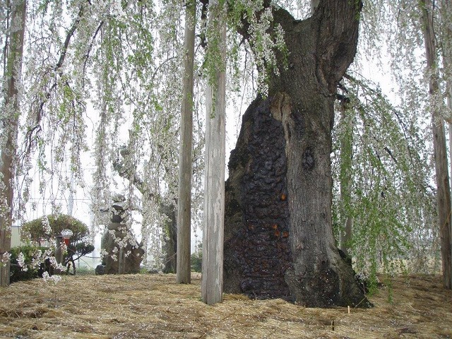 樹齢500年といわれる安養寺の枝垂桜は 頭の部分が落雷などで千切れているが