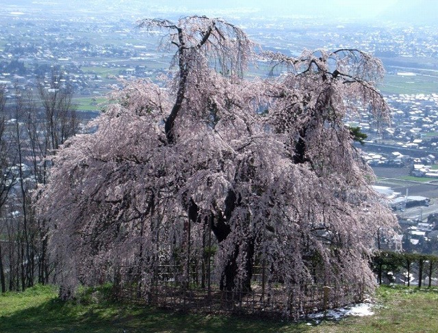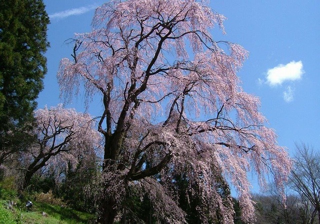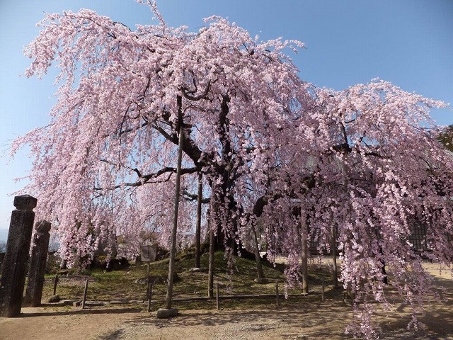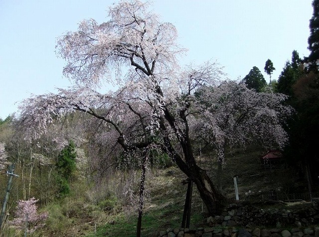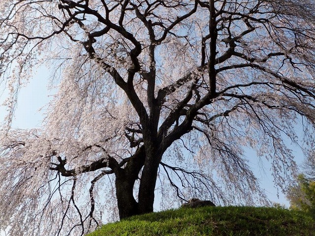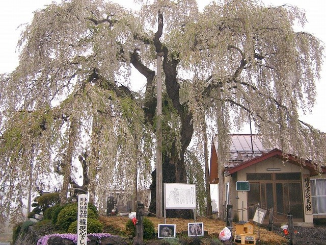飯綱町袖の山の枝垂桜は樹齢300年以上と言われ詳しくは不明だそうだ。
