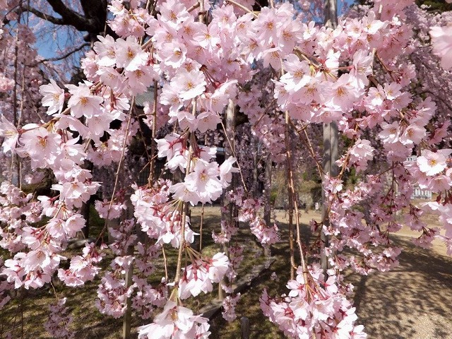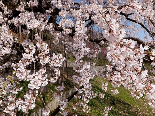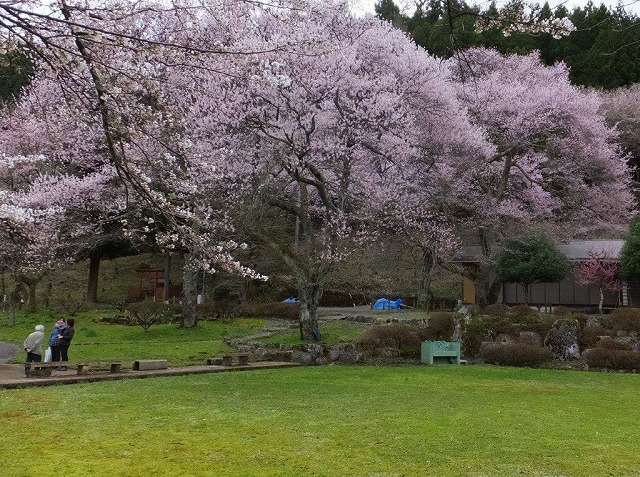 私が訪れたときは 枝垂桜が散り始めて大山桜が八分咲きですばらしかった。