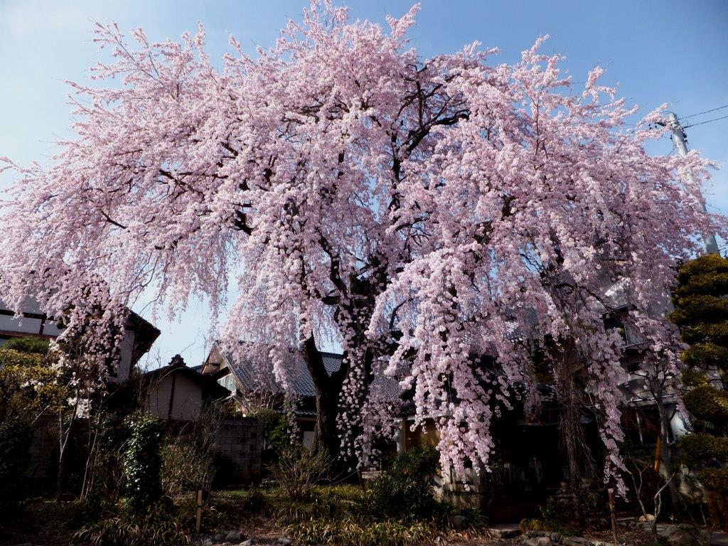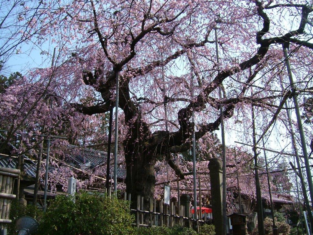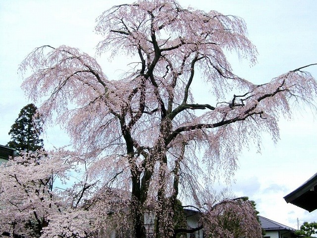 樹齢は不明だそうだが、毎年満開の花びらで 本堂の屋根を覆うその姿は気品がある。