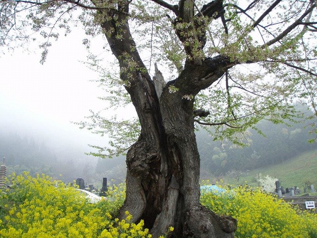 桜の名所「海津大崎」の近くのこの桜は墓地に咲く樹齢300年のアズマヒガンだ。