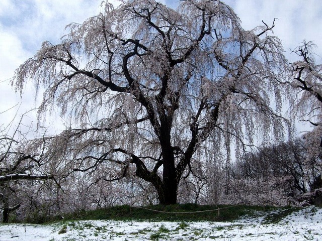 この桜をたずねたのは雪が積もった寒い朝だったが 積もった雪を振り払うように天を向いて立つその姿は素晴しかった。