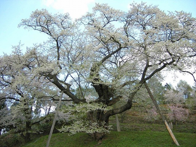 残っていない。満身創痍の桜であるが 今も季節になると花を咲かす孤高の桜である。
