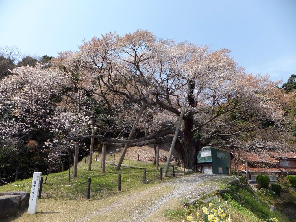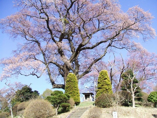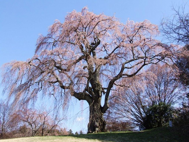 樹齢は1100年の江戸彼岸桜という。緩やかな斜面に生えている。
