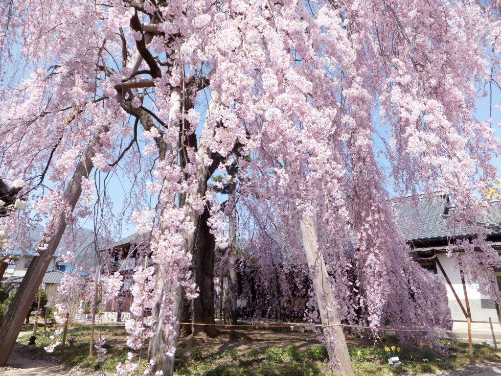 31 長野市篠ノ井光林寺雪の境内に立つ枝垂れ桜