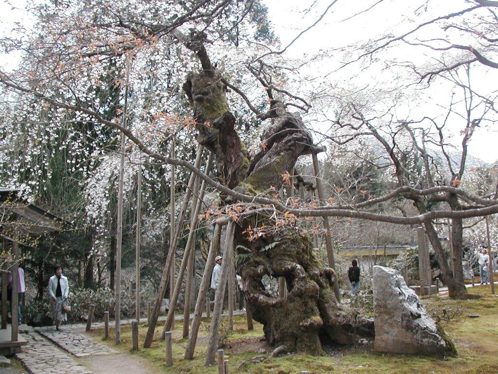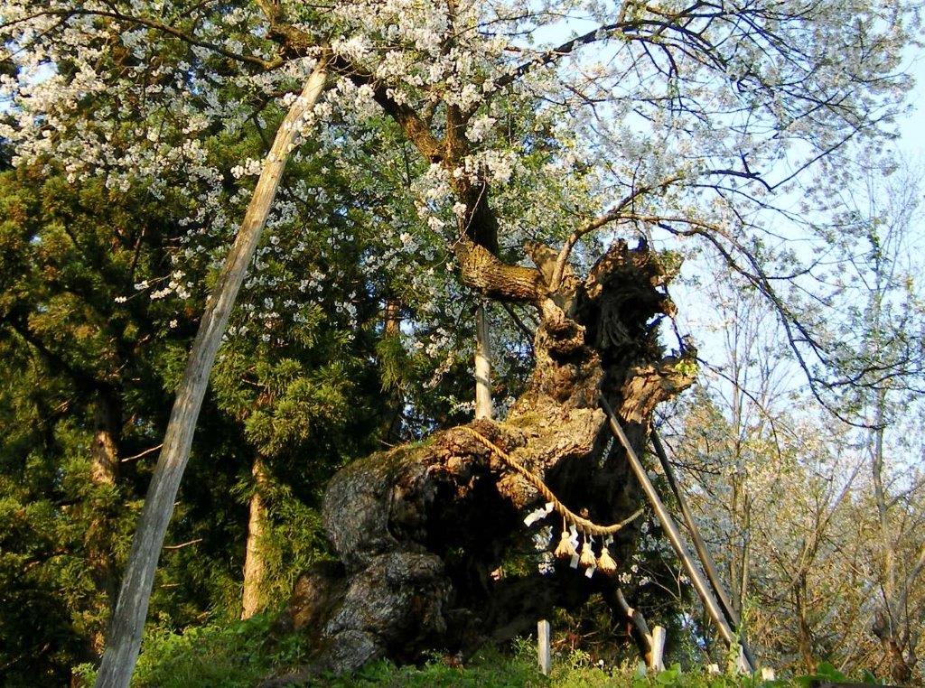この桜は山桜の変種で八重の花びらを持つ変わった桜で樹齢1200年ということだ。