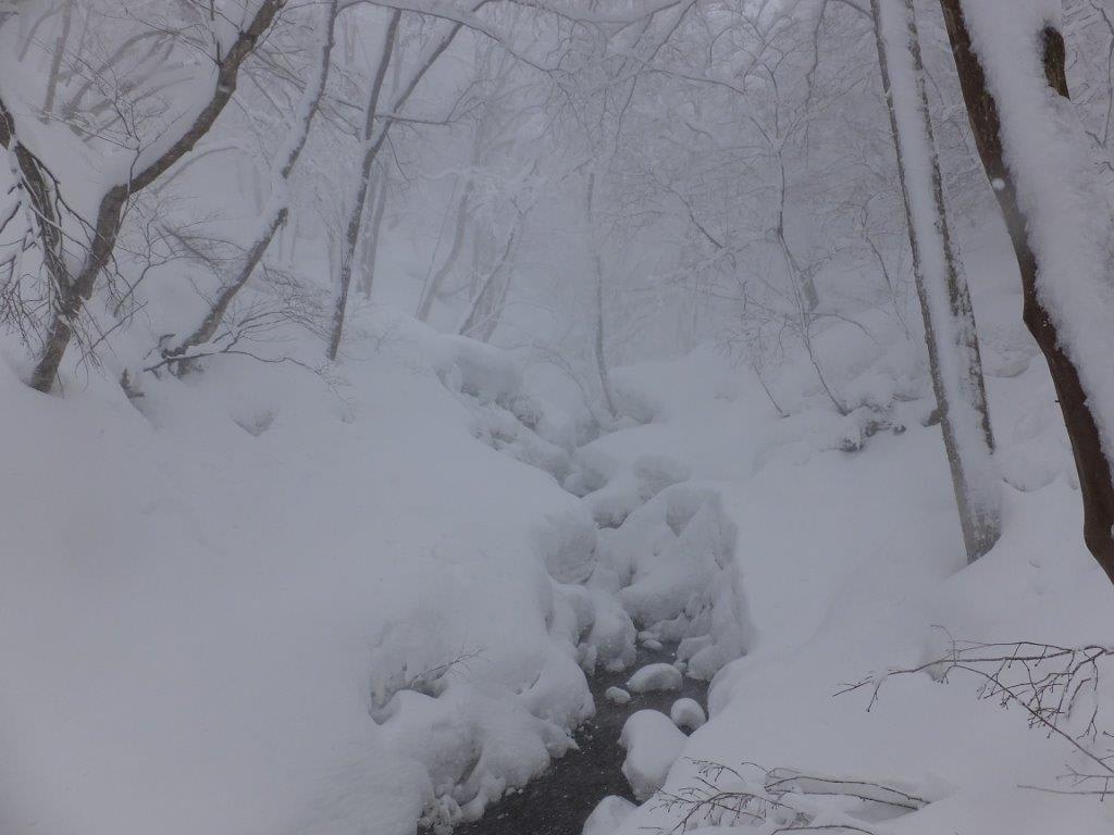 降り始めてしばらくは、ここの谷もすばらしくきれいなブナの森が続く。
