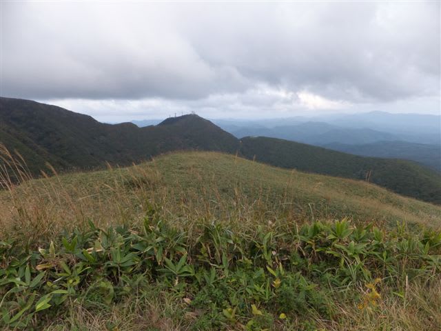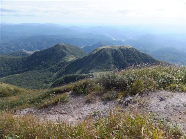 山頂からは360度の眺望が開ける。山頂から大万木山を望む。