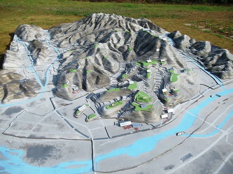 月山ふもとの観光案内所の前に置いてある 月山富田城の模型です。