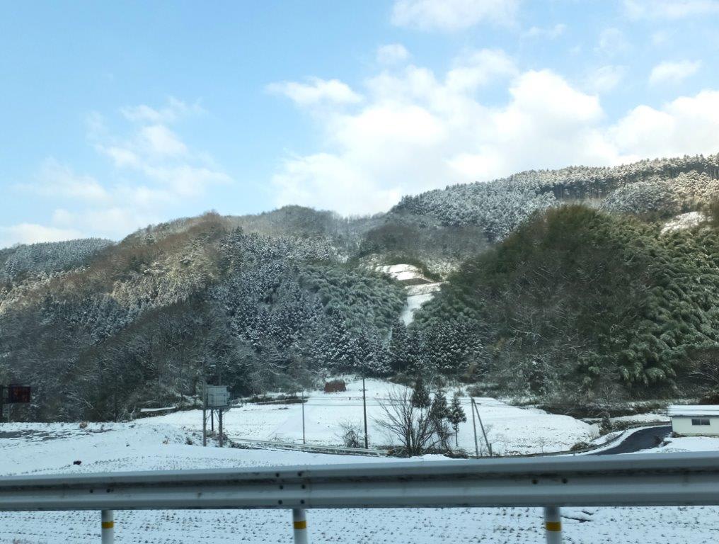 松江市の自宅から山陰道、松江道を走り 松江道掛合付近の山は真っ白です。