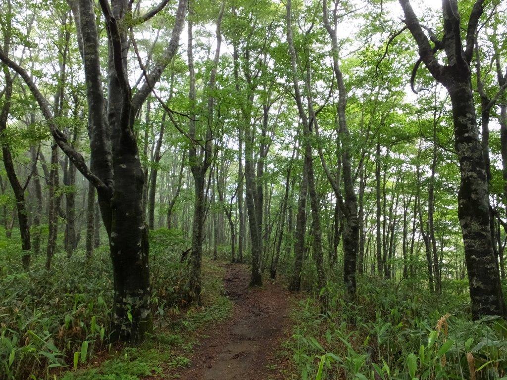 山頂付近のブナの森。この森もとてもきれいで気持ちよく歩ける。