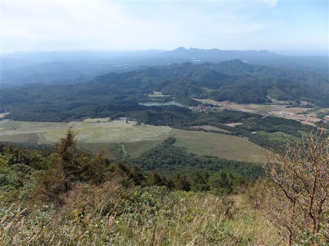 日本海や隠岐の島が見えると書いてあるが霞がかかってほとんど見えない。