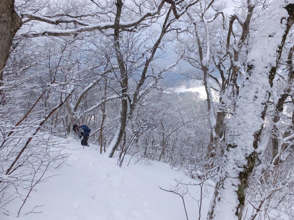 しばらく山頂で景気を楽しんだ後、稜線分岐点まで引き返す。今度は反対