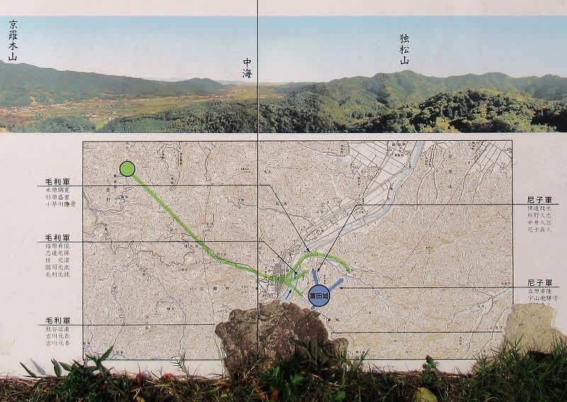 目の前の高い山は京羅木山(473m)で、毛利の大軍が押し寄せたときに