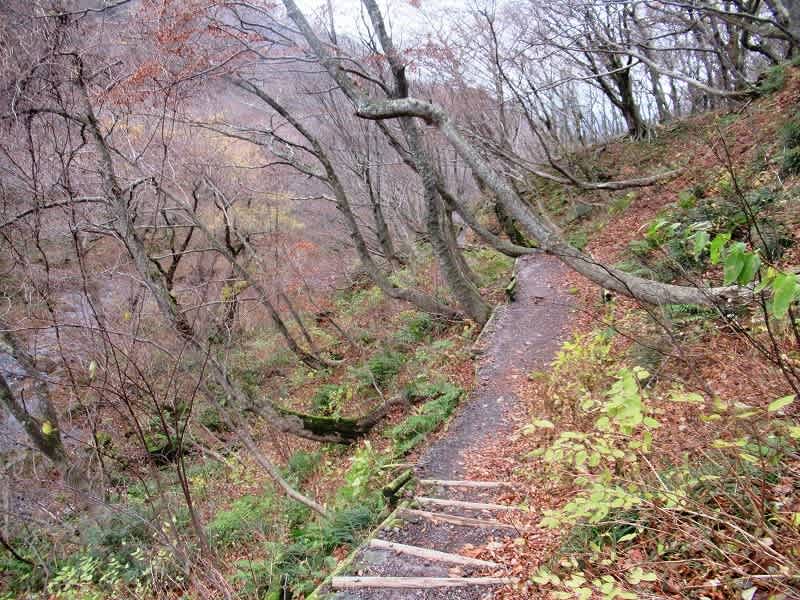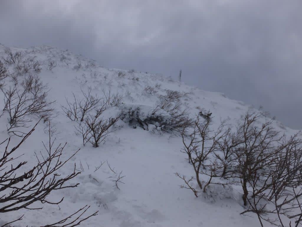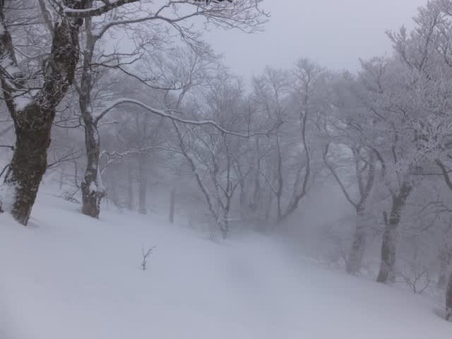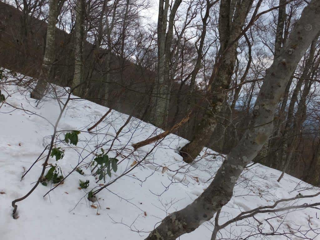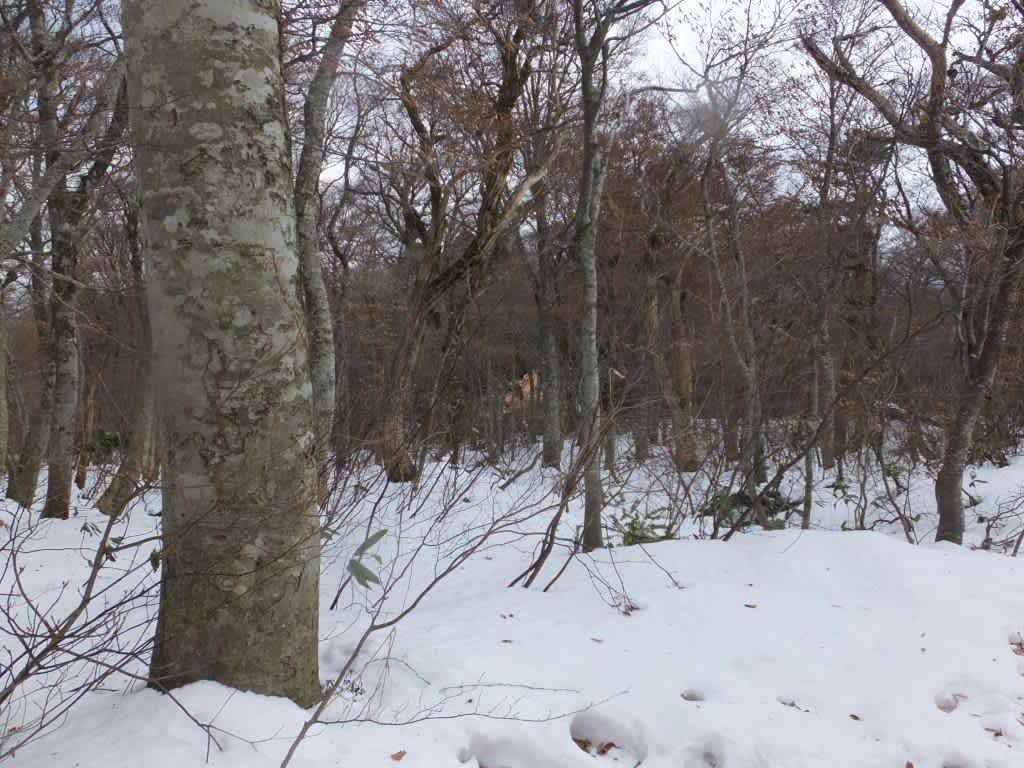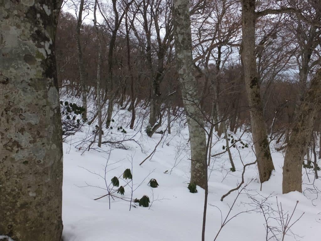 この辺りまで登ってくるともうブナの大木の森は終わり小さな木がほとんどです。豪雪のせいです。