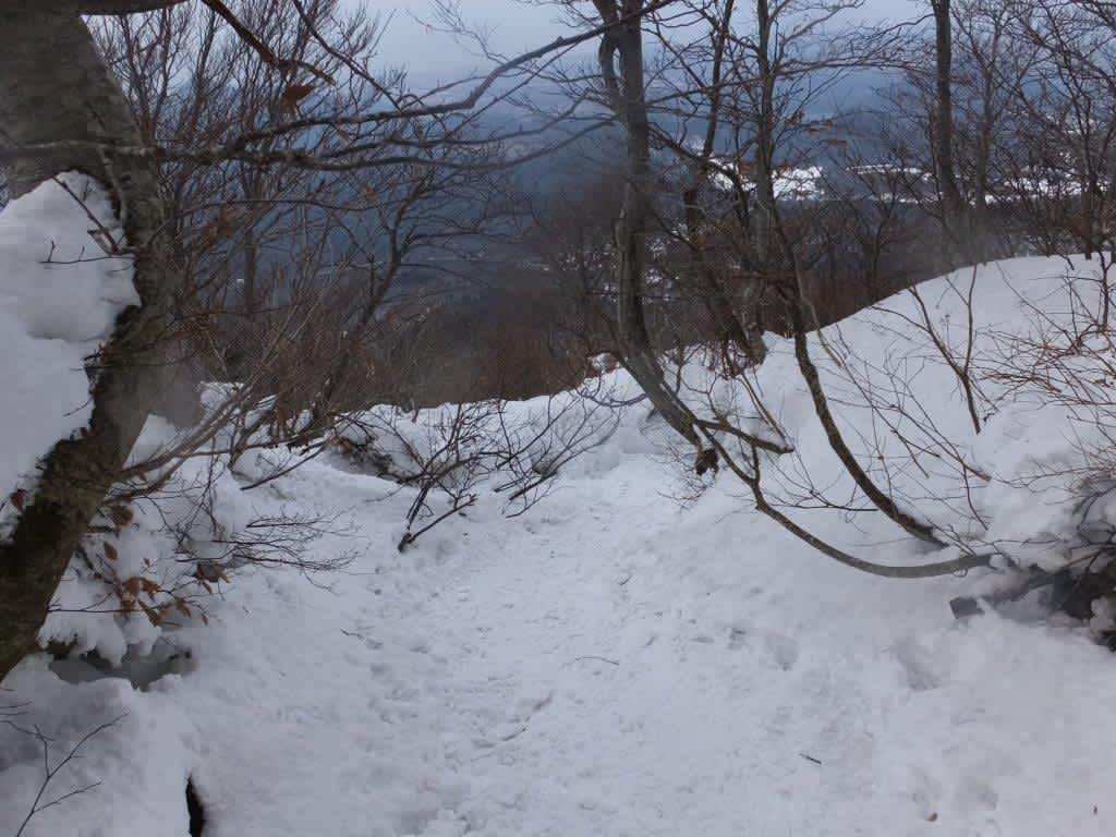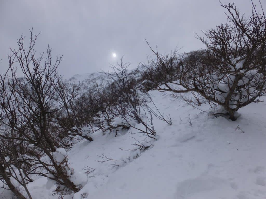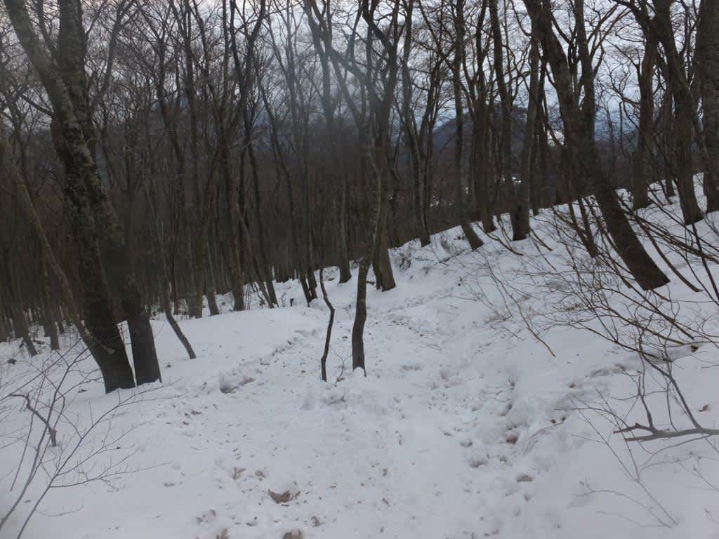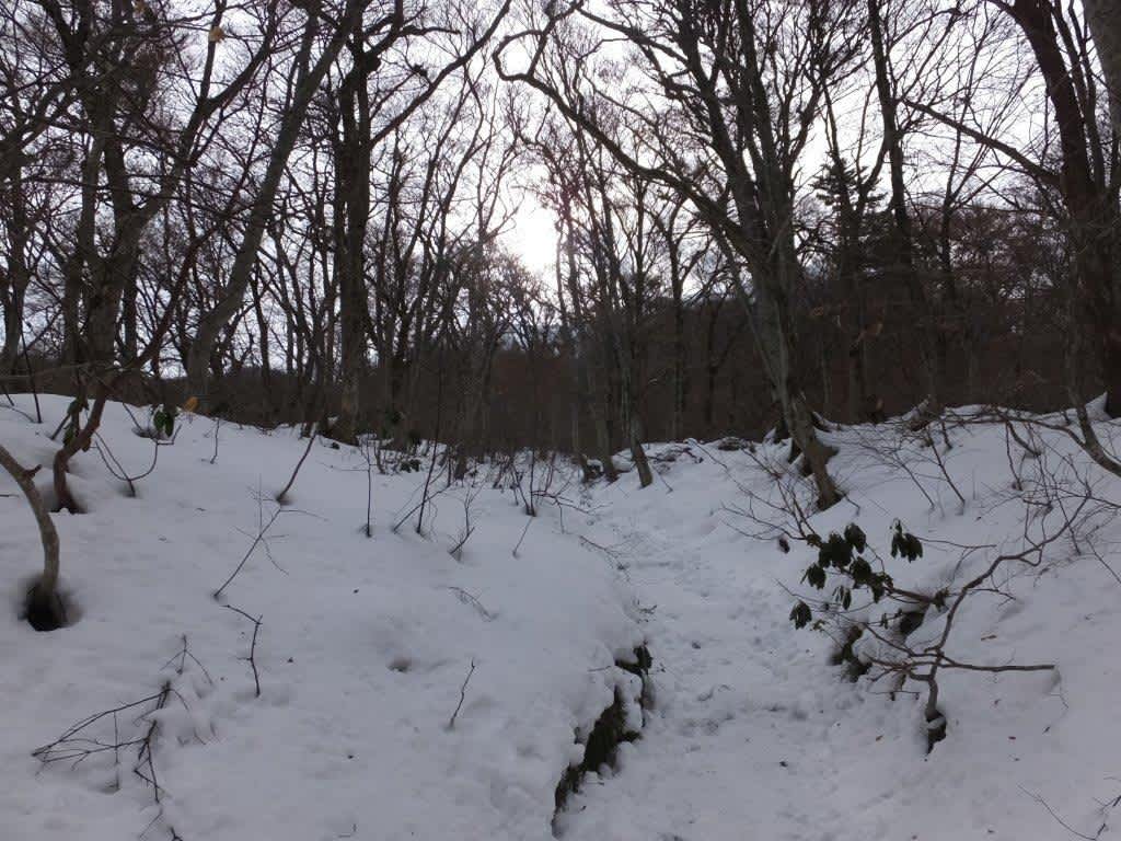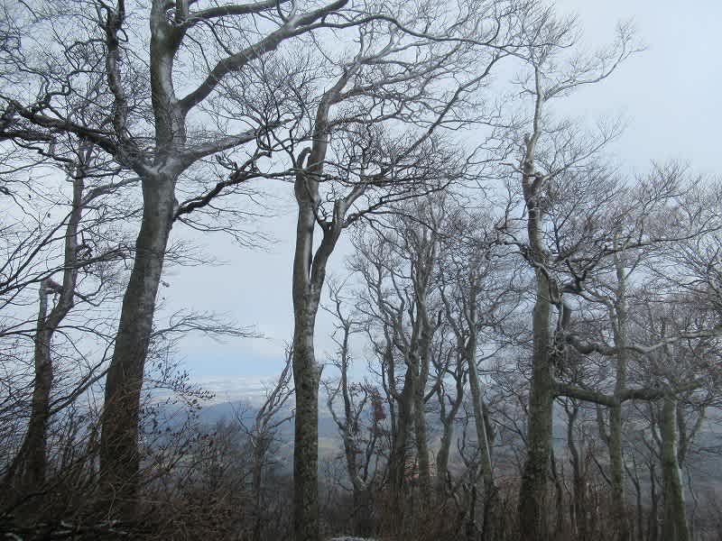 この辺りまで登ってくるともうブナの大木の森は終わり小さな木がほとんどです。豪雪のせいです。