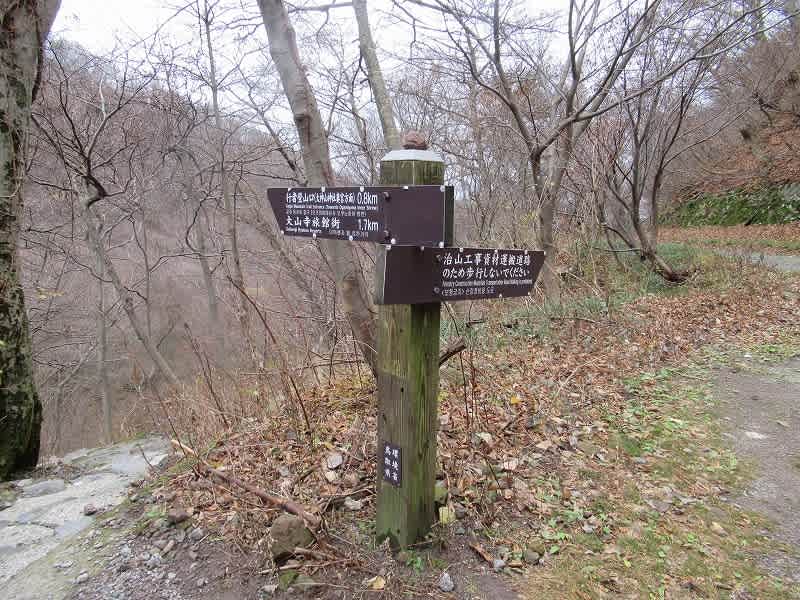 ここを左に進み山頂から周回遊歩道を回りこの右から戻ってきます。