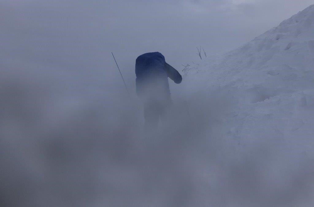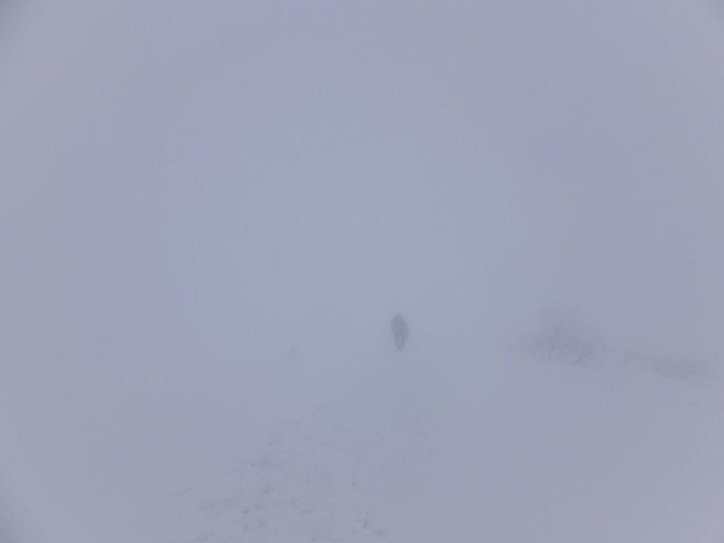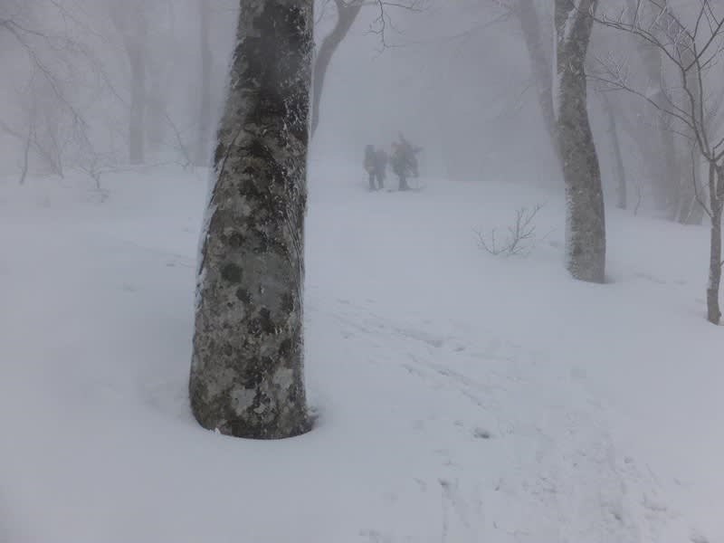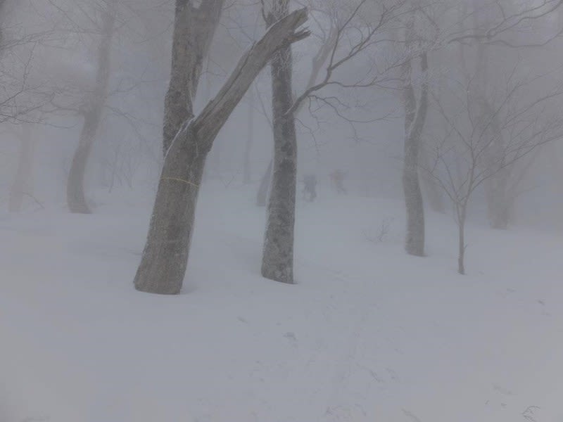 ホワイトアウト寸前で前を行く その若い方の姿も見失いそうです。