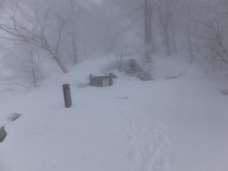 吹雪で何も見えません。危険を感じたので 下山する事にしました。