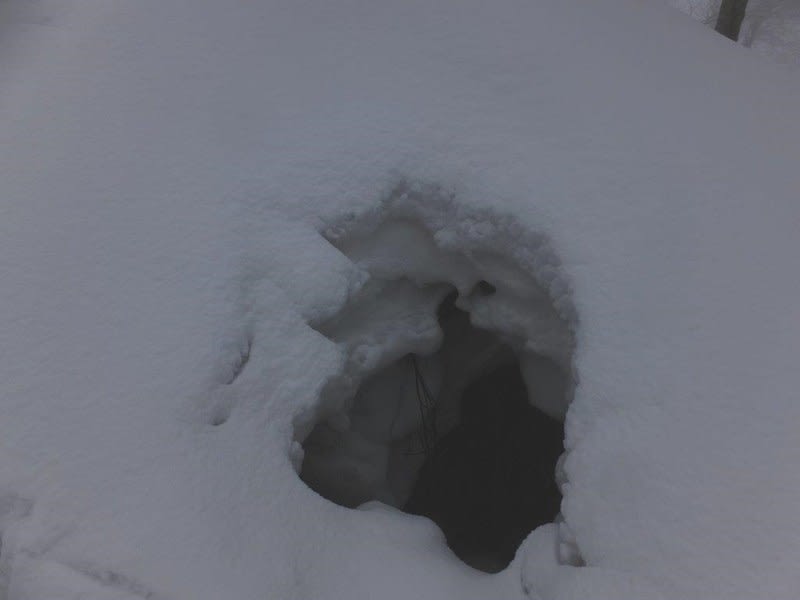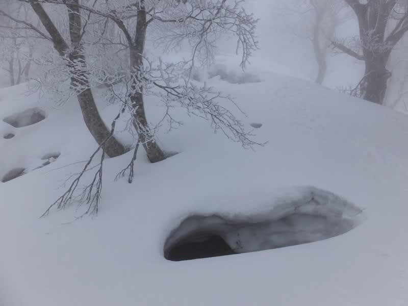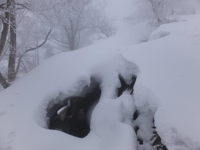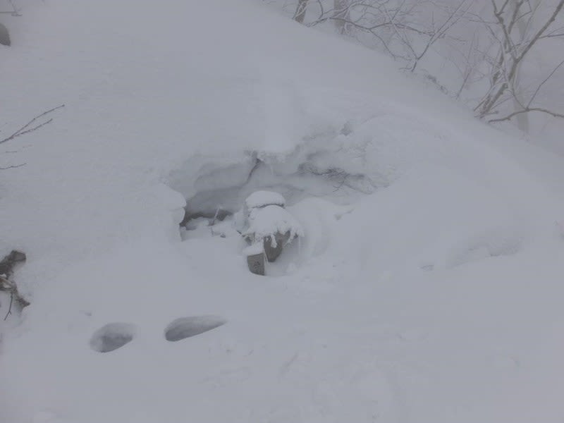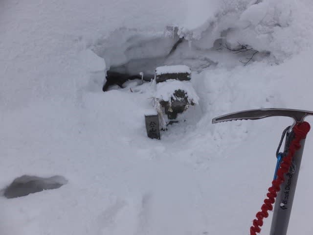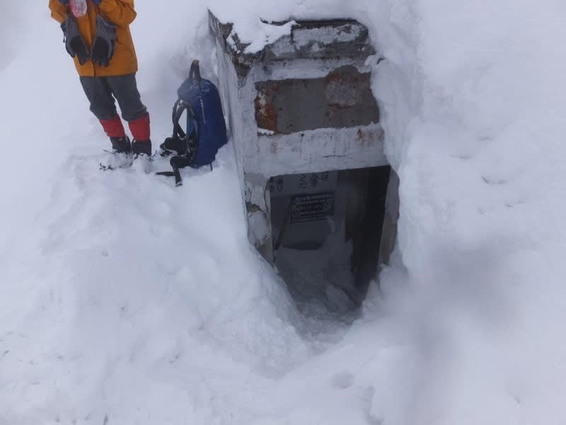 6合目避難小屋は完全に雪に埋っているので 中へ入るには、穴の底へ降りていきます。