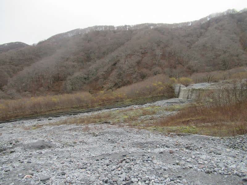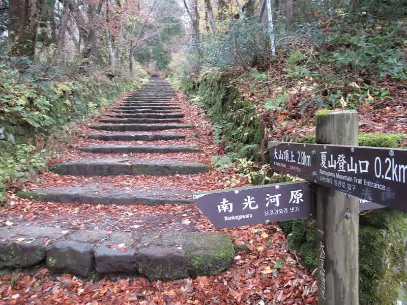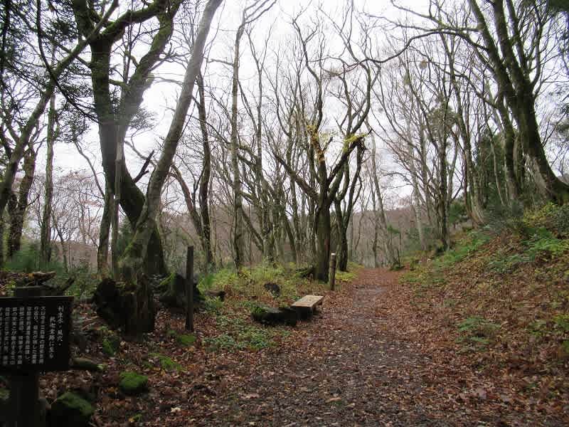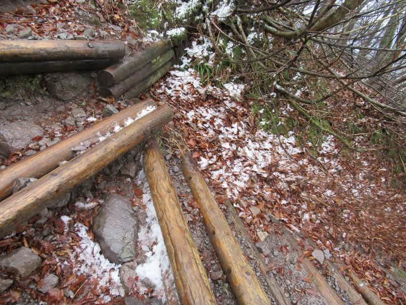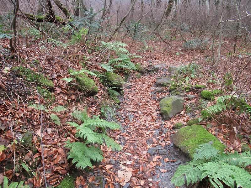 駐車場から登山道へ直接向かいます。紅葉はすでに終わり葉はほとんど落ちています。