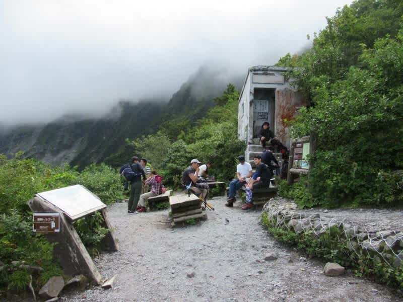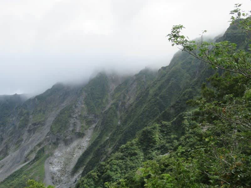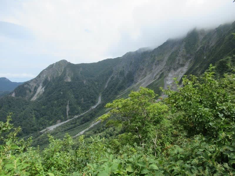 元谷に降りて振り返ると荒々しい北壁は雲に隠れて見えません。