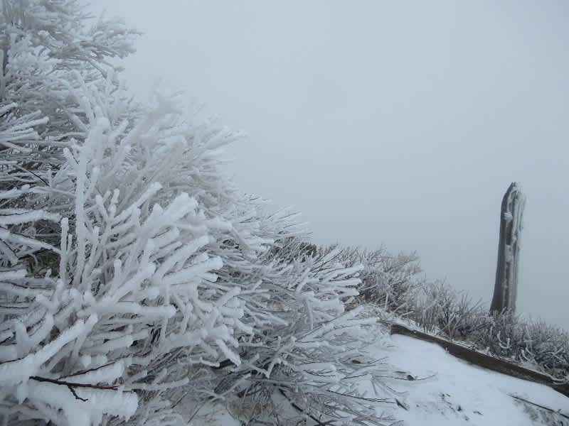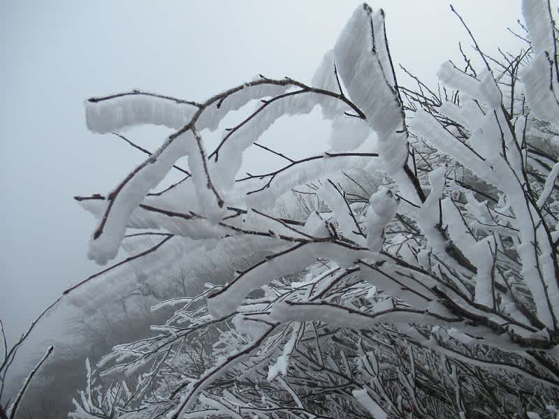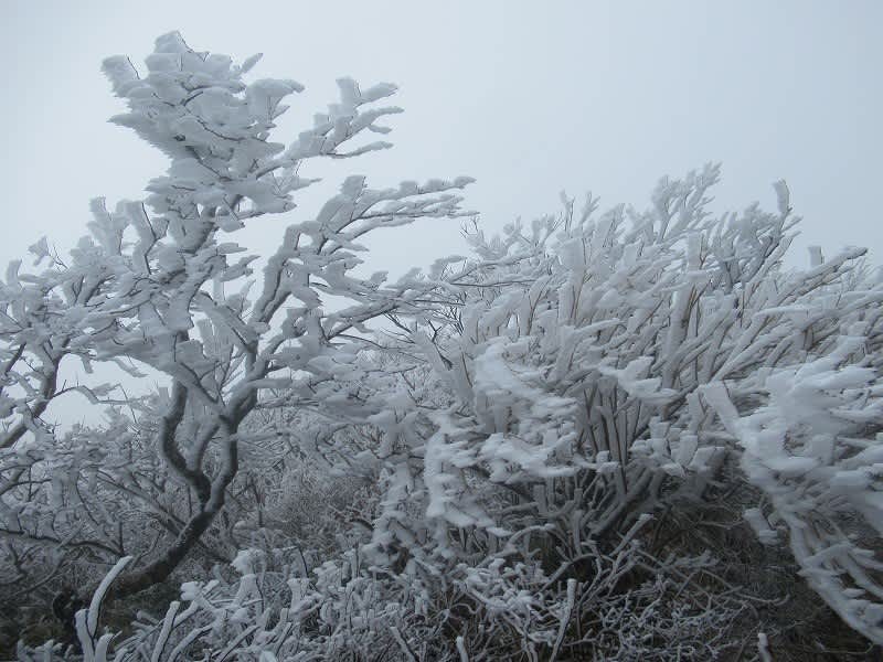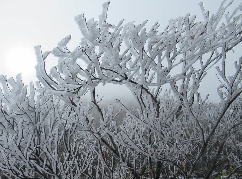 ダイセンキャラボクに着いた霧氷です。風に揺れてとてもきれいです。
