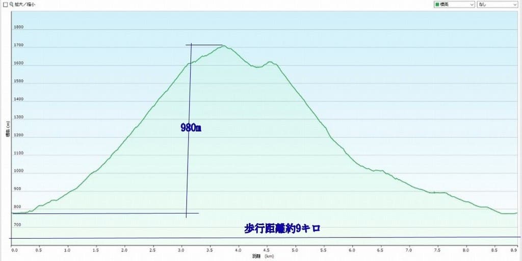 リュックとそれに取り付けたGPSをおいて登ったので 高度距離記録を修正しました。