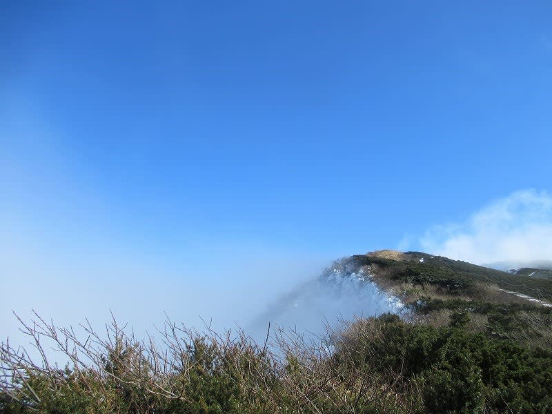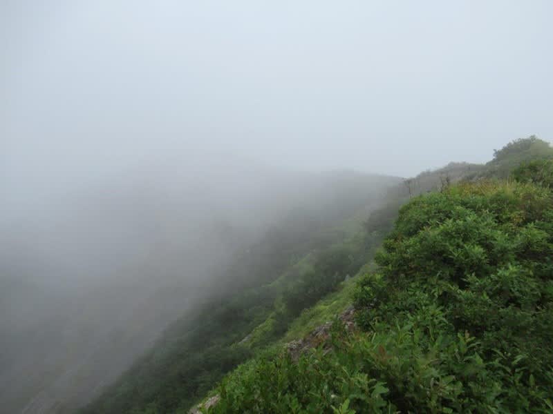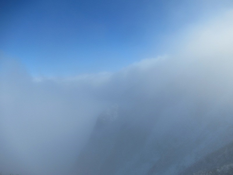 左を見ると元谷に雲がどんどん流れ落ちています。しかし急な坂やなあ。