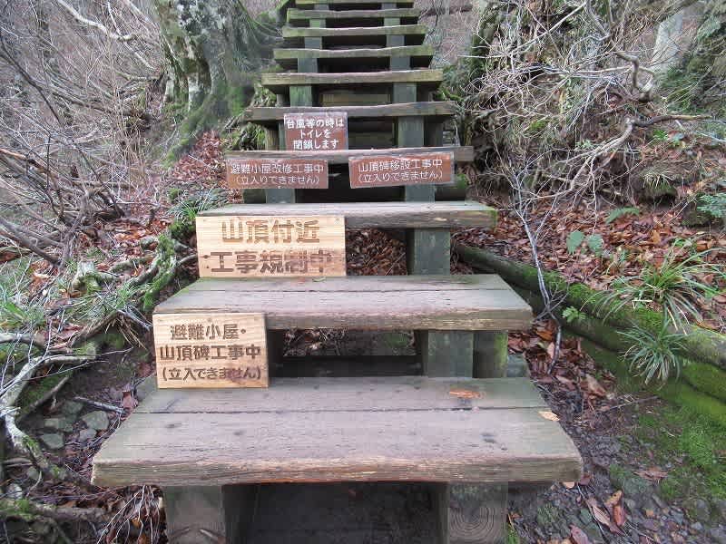 弥山は立ち入り禁止です。工事資材がたくさん置いてあります。