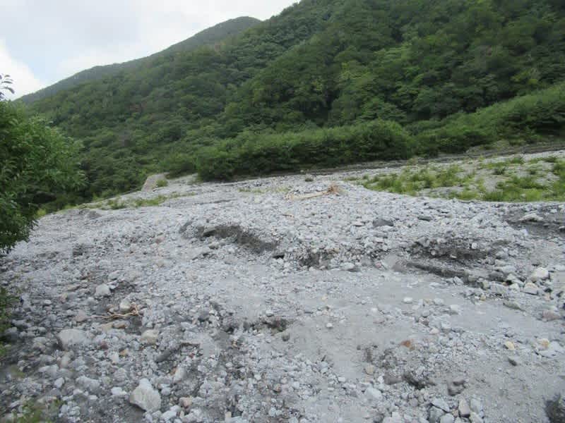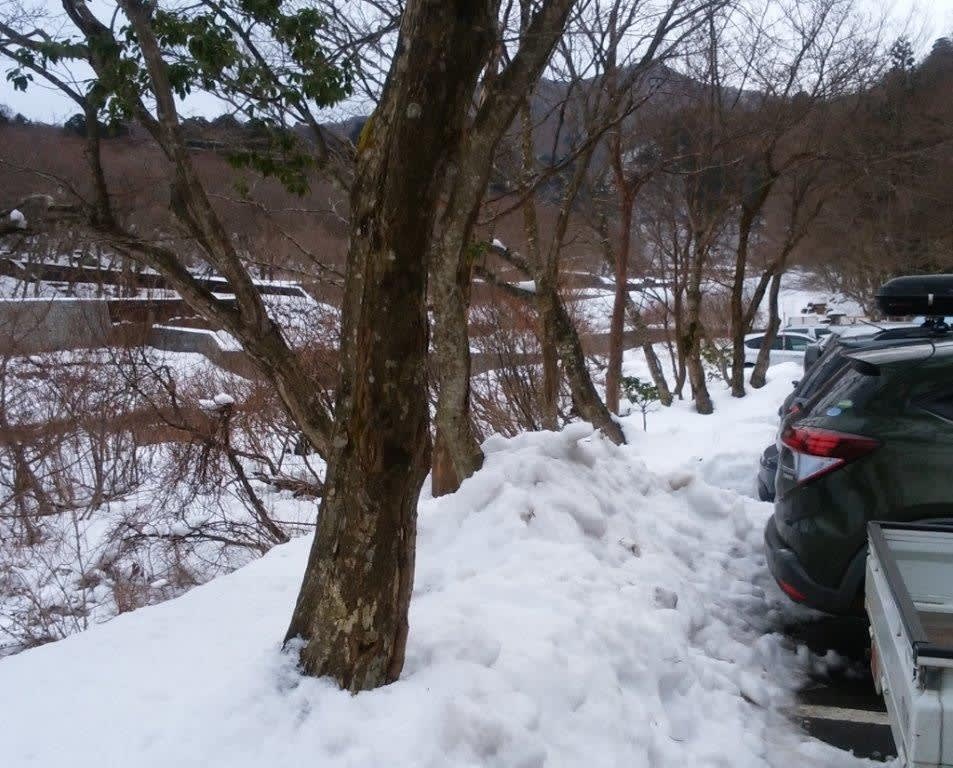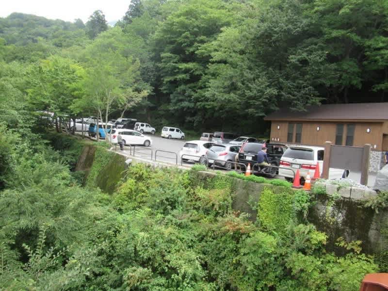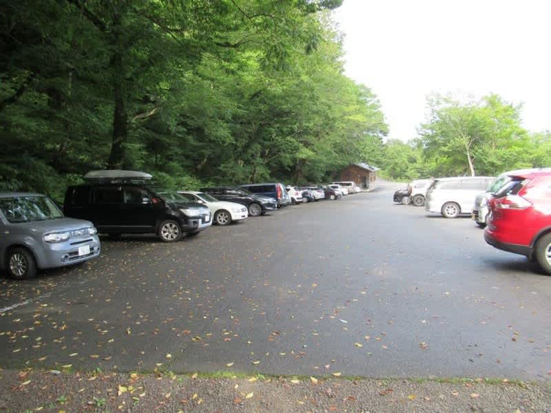 夏山登山道の途中から近道に入り 斜面を急降下すると駐車場が見えてきました。
