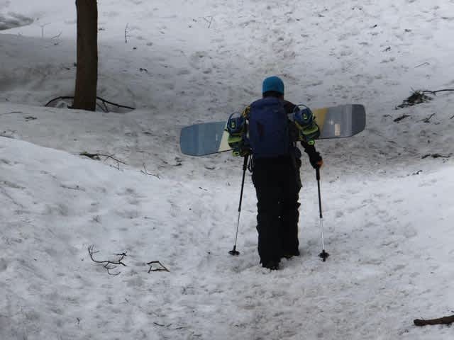 山を降りているとこんな時間からスノボーを持って登っていく人にすれ違いました。