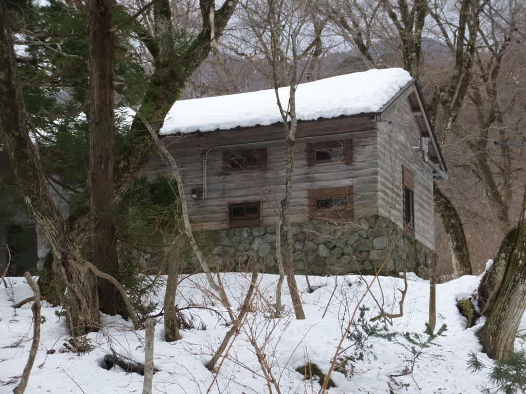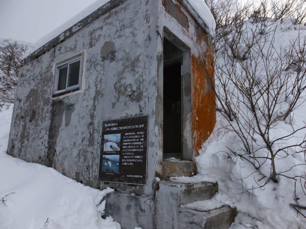 6合目の避難小屋到着です。雪に埋っていませんでした。良かった。