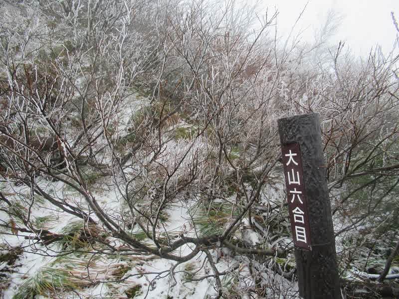 6合目から下山を開始しましたが、このあたりは樹林帯を越えているので、強烈な吹雪とガスで