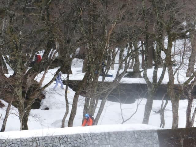 着替えをしていると 大きな声でワイワイ言いながらスキーヤー達が元谷を降りてきました。