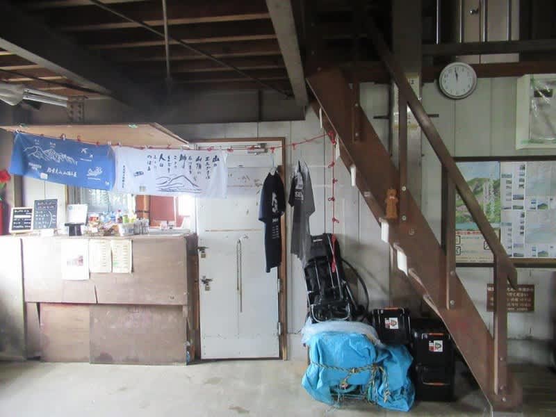 南光河原駐車場の隣には山用品の店もあります。折れたポールの代わりを探しに入りました。