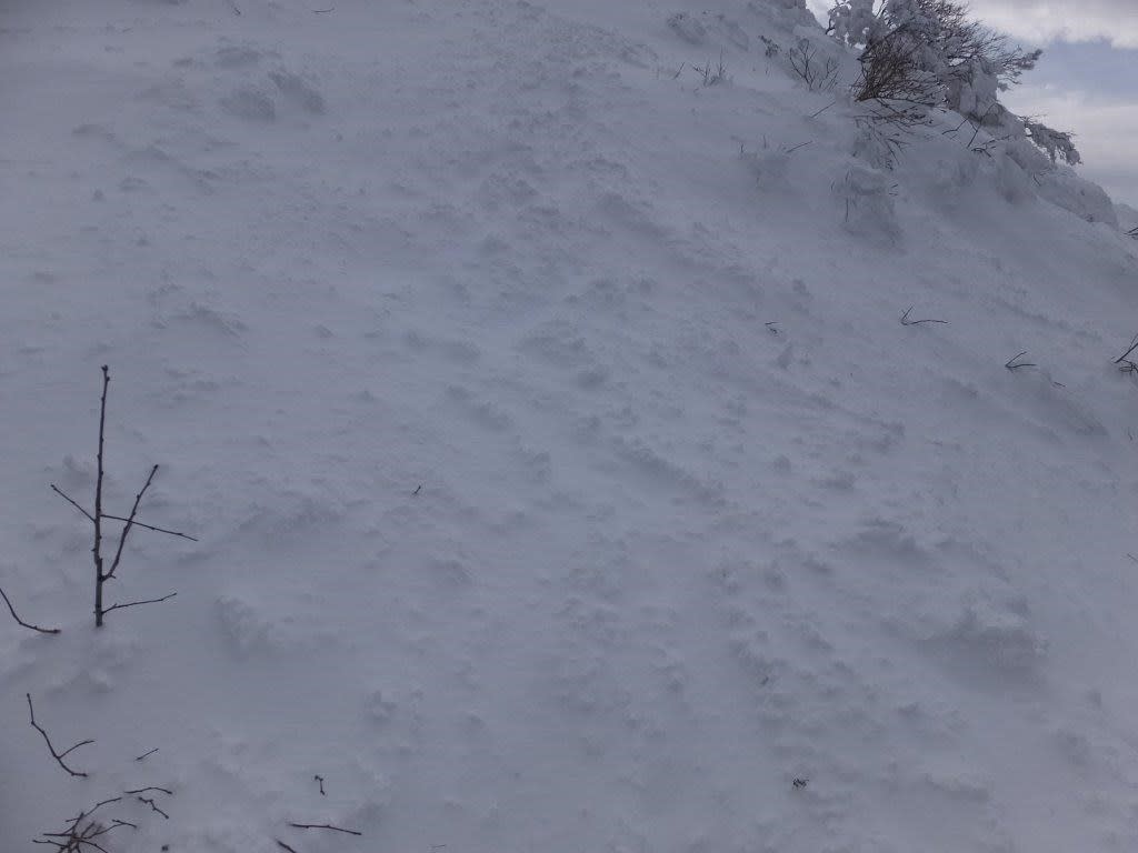 この樹氷がばらばらと振ってきて 全身にたたきつけるのです。痛い痛い。